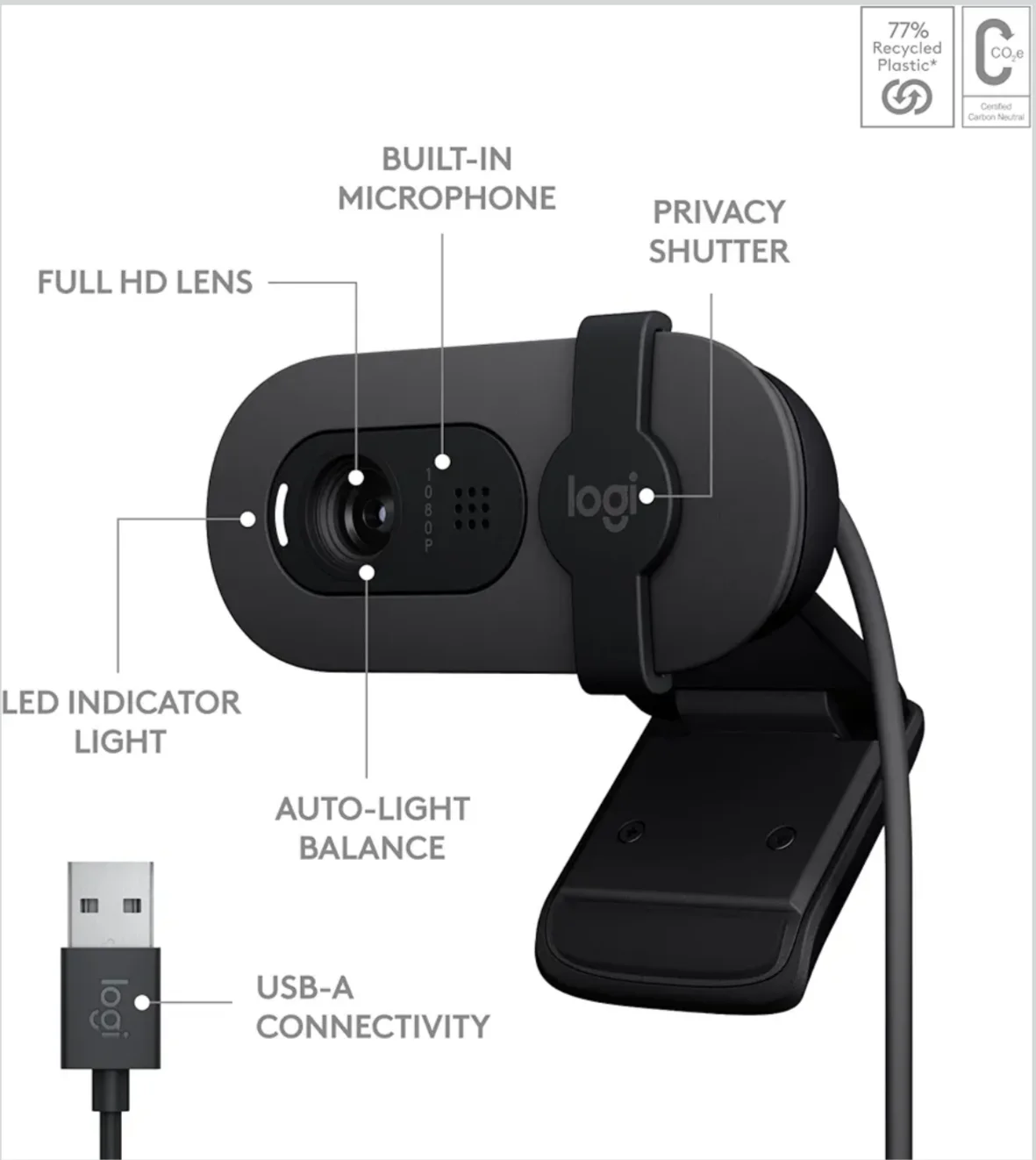 Easy Plug-And-Play: The Brio 100 works with most video calling platforms, including Microsoft Teams, Zoom and Google Meet